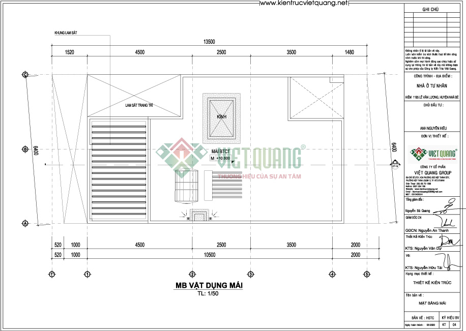 b, Mặt bằng mái nhà làm bằng bê tông cốt thép