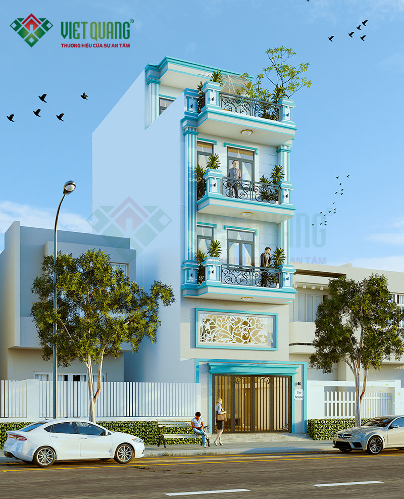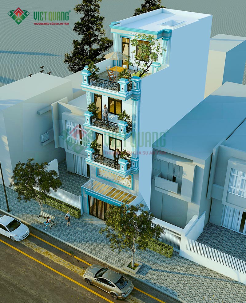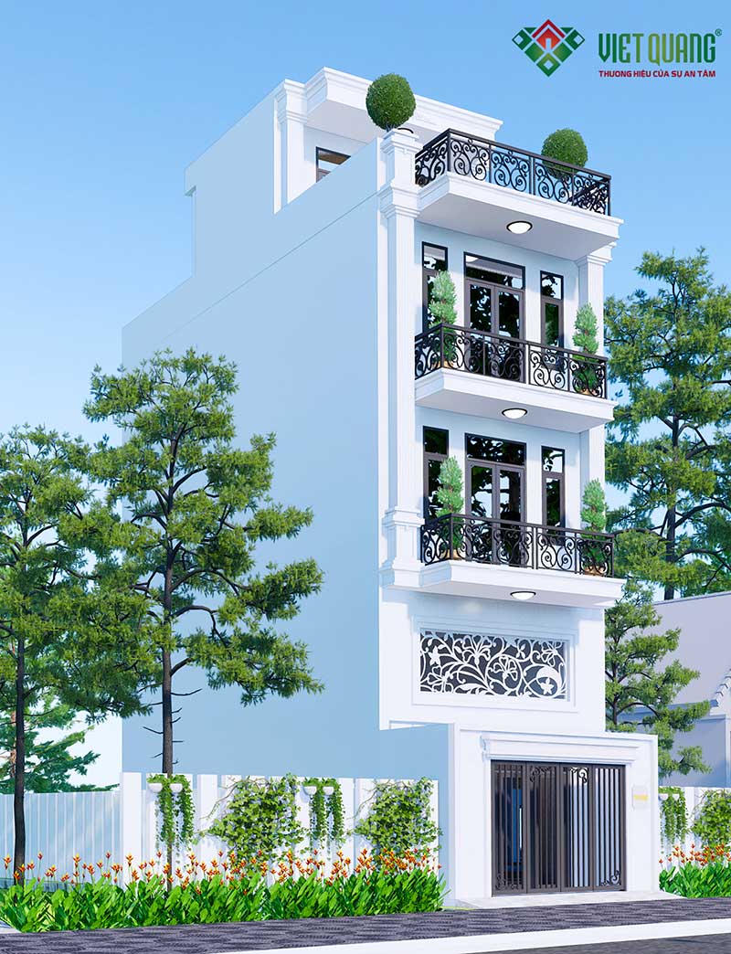 Mẫu thiết kế nhà phố 4 tầng mang hơi hướng kiến trúc Pháp có chiều rộng mặt tiền 5m