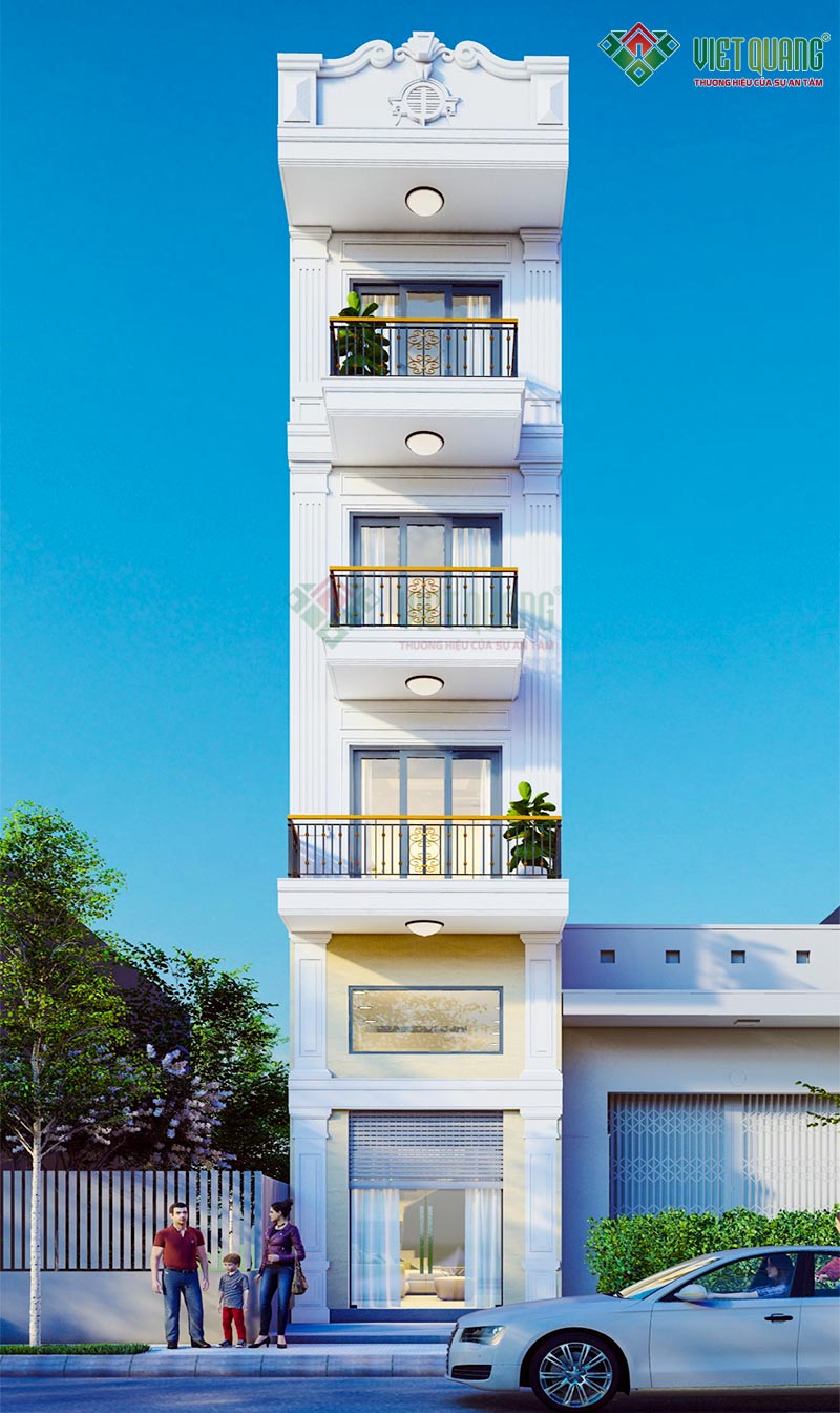 Mẫu thiết kế nhà phố kiểu Pháp với chiều rộng mặt tiền 3 – 4m