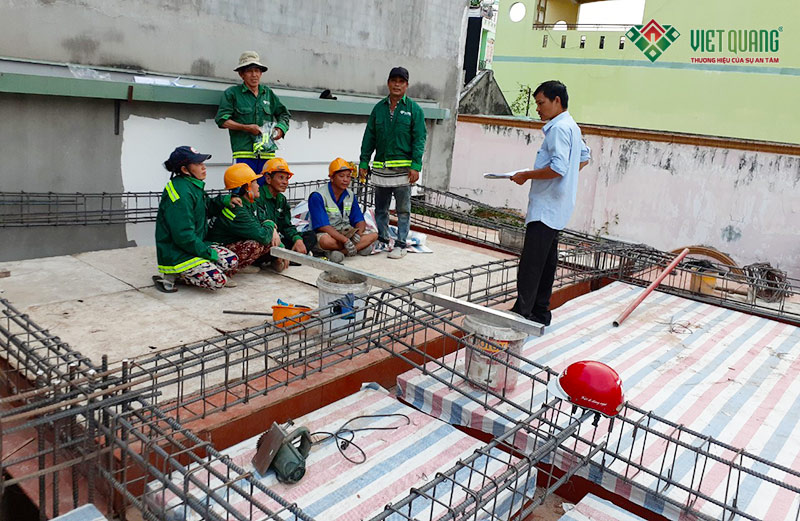 Giám đốc khối. Ông Nguyễn Thanh Quang triển khai công việc và hướng dẫn công nhân thi công đúng tiến độ và chất lượng