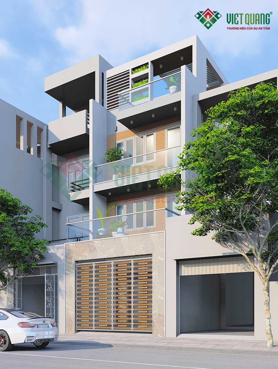 • Quy mô công trình: Nhà phố 4 tầng bao gồm: 01 sân trước + 01 phòng khách + 01 bếp và bàn ăn + 06 nhà vệ sinh + 05 phòng ngủ + 01 phòng thờ + 01 sân thượng trước và sau + 01 giếng trời.