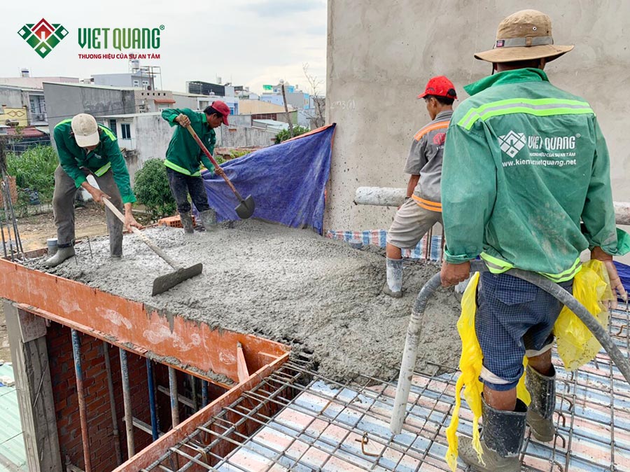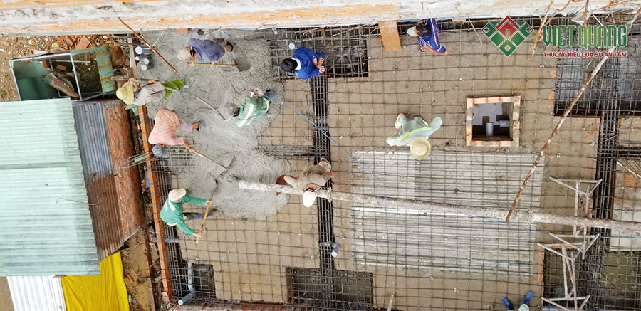 Hình ảnh công nhân Việt Quang đang đổ bê tông sàn