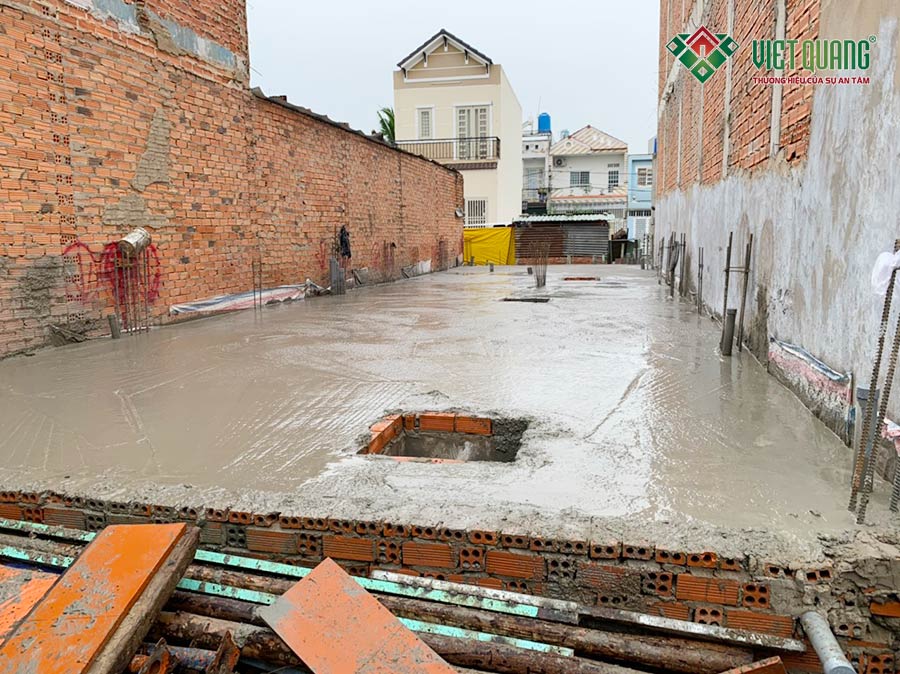 Hình ảnh đổ bê tông và làm mặt xong nền bê tông tầng trệt