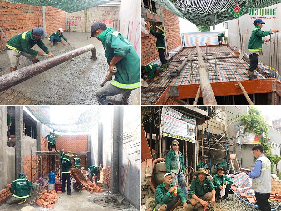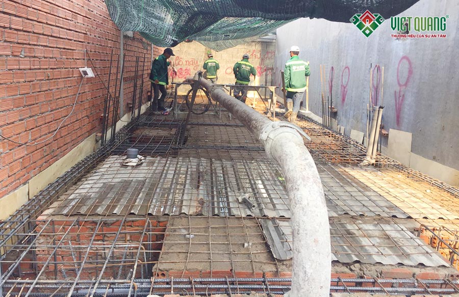 Hình ảnh thi công và đổ bê tông sàn lầu 1 lầu 2