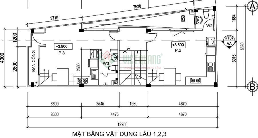 Lầu 1, 2, 3: Thiết kế giống nhau, mỗi lầu đều có 02 phòng có gác lửng. Không gian phòng rộng rãi, thông thoáng, sáng sủa vì có ô giếng trời, ban công có sửa số lấy gió và ánh sáng cho các phòng.