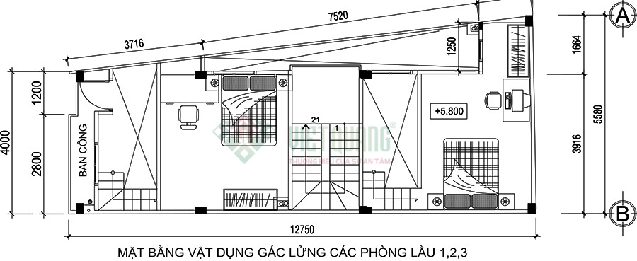 Tầng lửng: Các phòng là nơi bố trí giường ngủ, hoặc bàn làm việc, tủ quần áo…