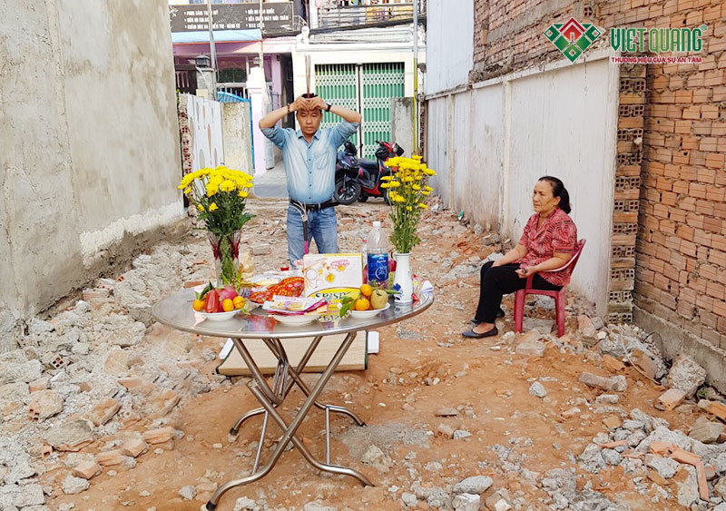 Nhân sự Kiến Trúc Nét Việtcùng gia đình chị Trang làm lễ khởi công xây dựng công trình vào ngày 03/02/2020