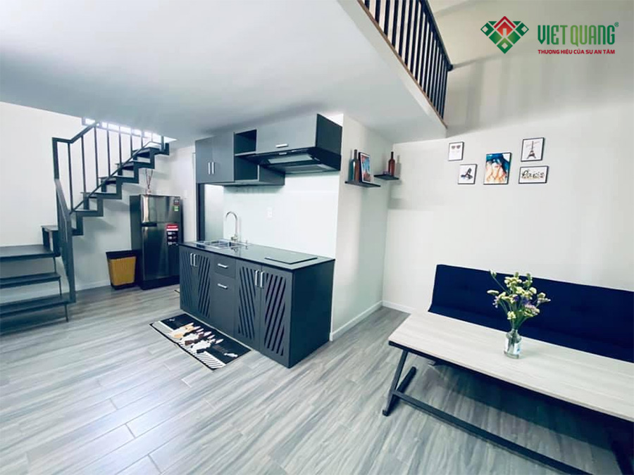Hình ảnh hoàn thiện của một căn phòng cho thuê với đầy đủ nội thất sang trọng, cao cấp của ngôi nhà.