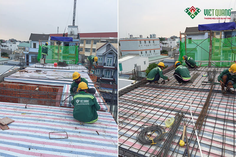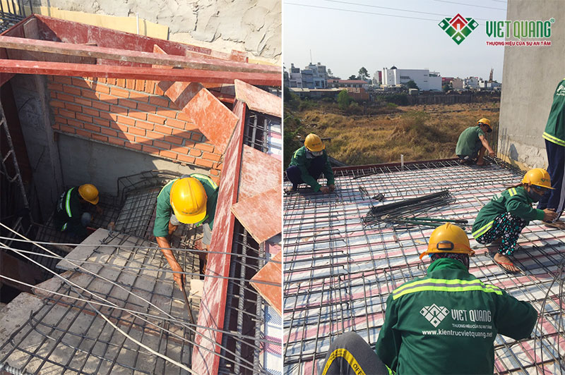 Hình ảnh thi công thép sàn và thép cầu thang rất chuyên nghiệp và đẹp mắt của công nhân Kiến Trúc Nét Việt tại công trình nhà chị Trang quận 9